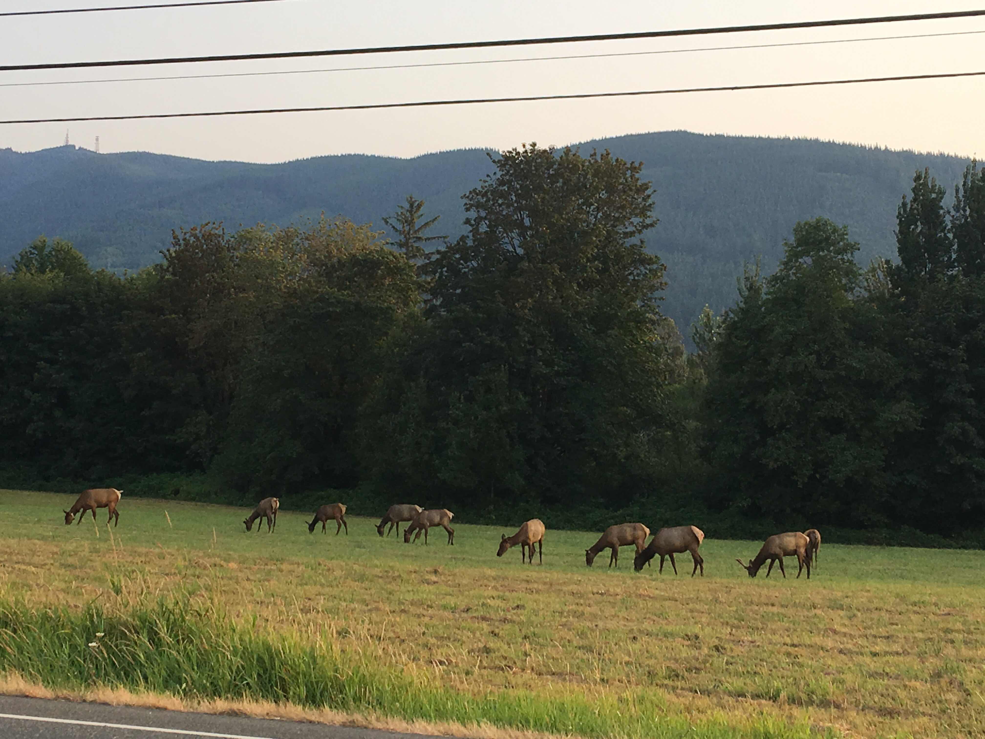 A grazing herd of elk